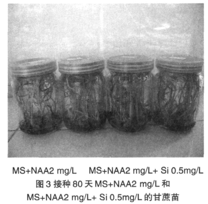 按生根情况来看,以MS+NAA 2mg/L+Si1mg/L的生根最好,具体情况如下表