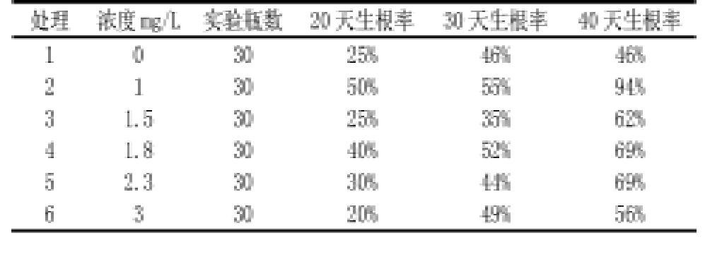 从表3可知:30天之内,各浓度的硅促进生根的差别不明显,但较长时间(如40天),各浓度的硅促进生根的差别较明显,以1mg/L的促进生根的效果最好。