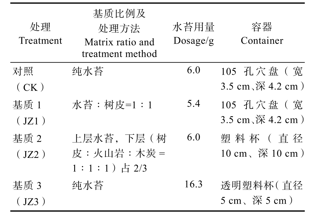 1.2.1 试验设计 本研究设计4种基质处理进行炼苗试验(表1),所有基质在种植前进行杀菌处理。