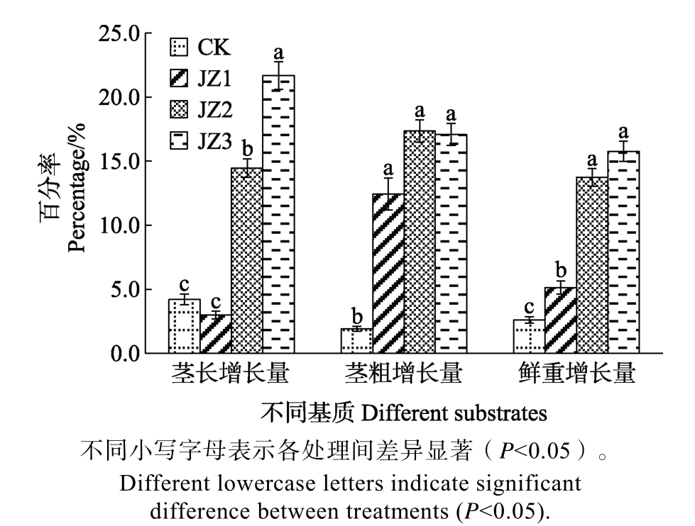 图1 不同基质处理华石斛91香蕉APP下载苗2个月的生长量变化